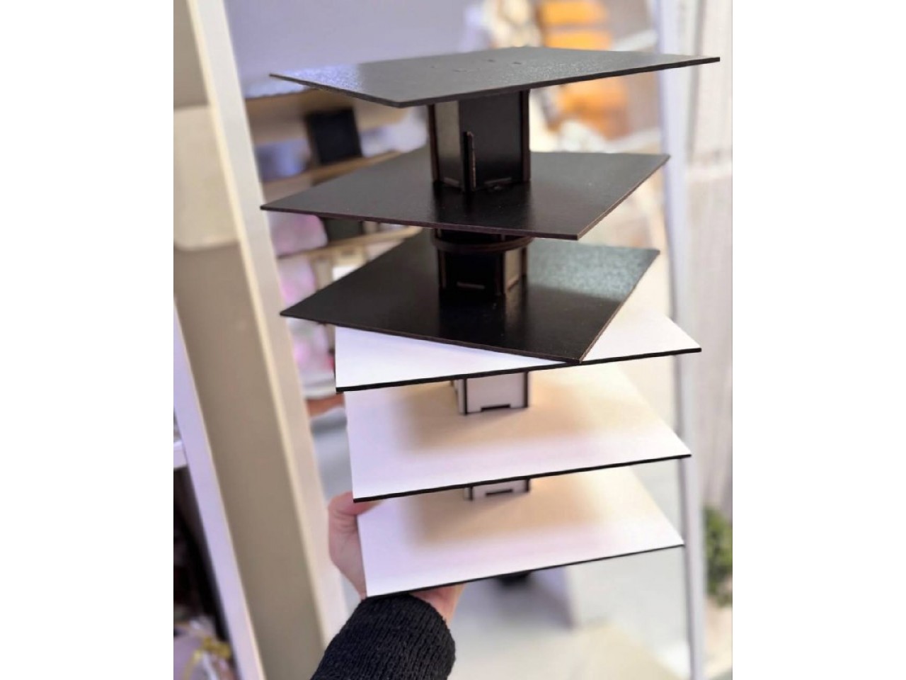 Чорна підставка "кубик-рубик", 20х20см., на 3 поверхи